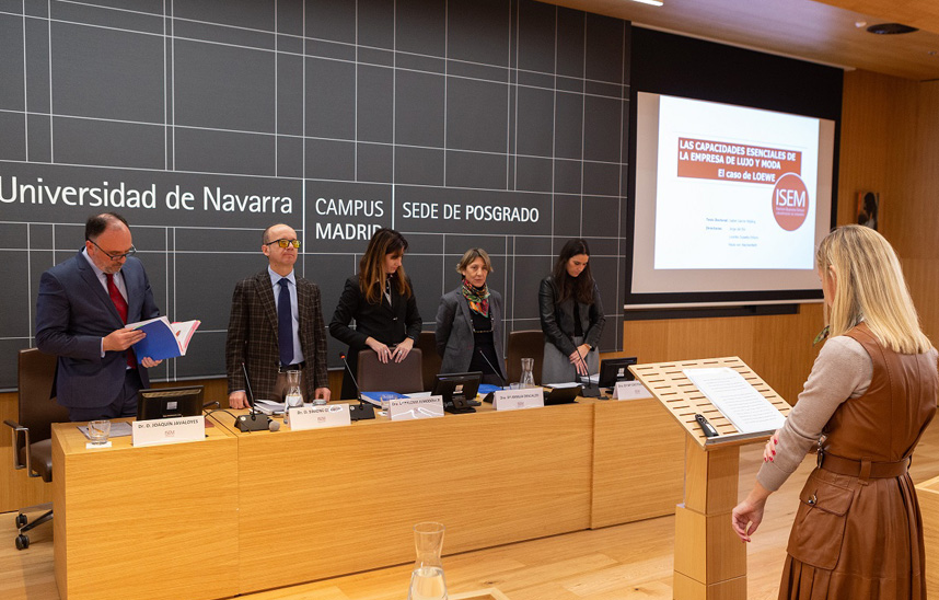 "Artisanal know-how, the creative director and family heritage are a source of competitive advantage in luxury and fashion companies". This was stated by researcher Isabel García Hiljding, who defended her doctoral thesis "The essential capabilities of the luxury and fashion company. The case of LOEWE" at ISEM Fashion Business School. This research is the fourth doctoral thesis to be defended at the School.