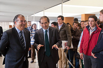 The University of Navarra inaugurated the Aula Banco Popular, located in the Amigos building, to express its gratitude for the aid granted to its students since the 2009-10 academic year by the financial institution, through the Fundación Grupo Banco Popular. The event was attended by the Rector, Alfonso Sánchez-Tabernero; the Chairman of Banco Popular, Ángel Ron; Igor Errasti, General Manager of the academic center; Francisco Aparicio, Secretary of the Board of Directors of Banco Popular; and Fernando Merino, Regional Director of the northern area of the bank.